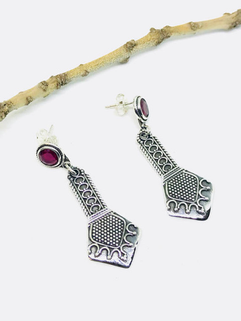Ruby Earrings set in sterling silver(92.5). Genuine Ruby stones. July Birthstone. Perfectly matched . Length-1.75 inch long.