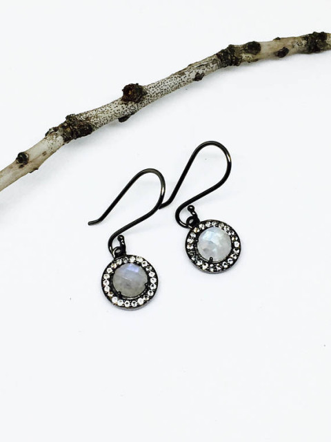 Genuine moonstone and natural white topaz earrings set in sterling silver .