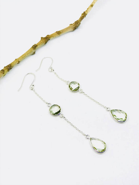 Green amethyst earring set in sterling silver 925. Natural authentic green amethyst stones. Perfectly matched. Length- 2.50 inch