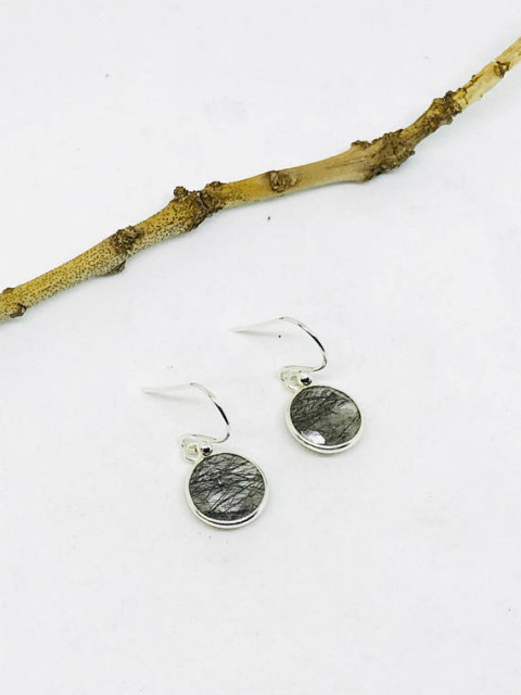 Tourmalated Quartz/tourmalinated quartz earrings set in sterling silver 925. Length- .50 inch. Natural black rutile stones.