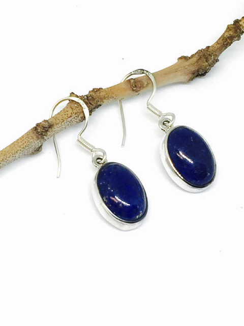 Lapis lazuli earring set in sterling silver 925. Genuine authentic natural lapis lazuli stones. Perfectly matched. Length- .75 inch.