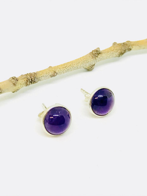 Amethyst stud Earrings set in Sterling silver (92.5) genuine natural amethyst stones perfectly matched . 9mm round stone.