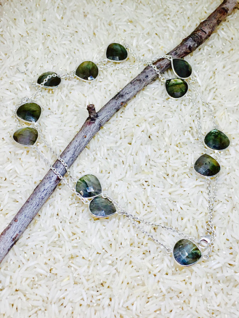 Labradorite multistone necklaces set in Sterling silver 925. 32 inches long. Natural authentic labradorite stones.