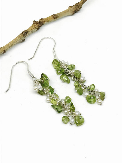 Peridot pearl Earring in sterling silver 925. Genuine natural peridot stones and pearl Length-1.65 inch.