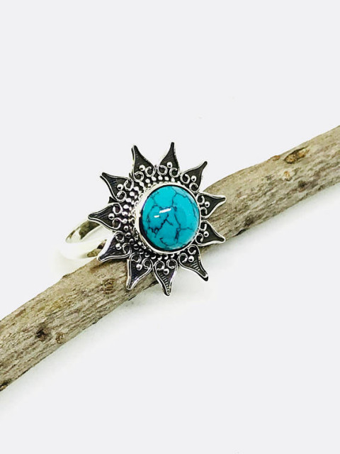Turquoise sun ring set in solid sterling silver 925. Size - 8 1/2. Genuine natural turquoise stone.