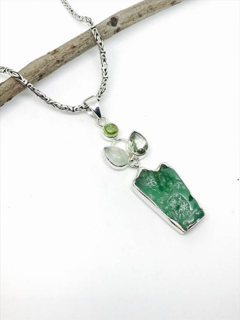 Chrysoprase, prehnite, peridot and green amethyst pendant set in sterling silver (92.5). Multigemstone pendant.